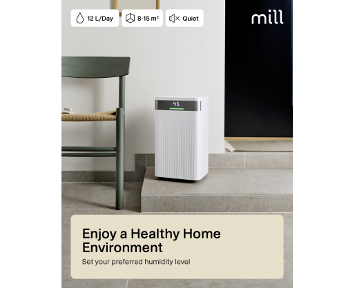 - Mill Dehumidifier | MDH12 | Power 200 W | Suitable for rooms up to 8-15 m² | Water tank...
