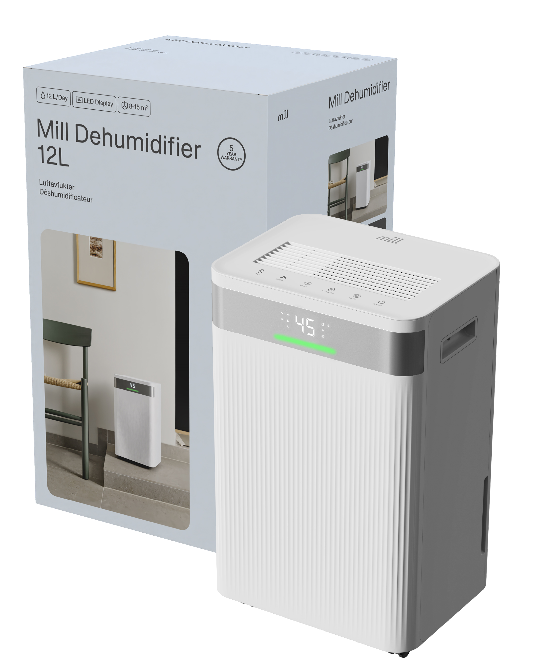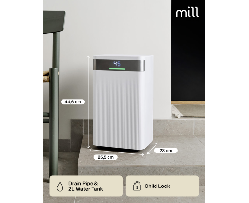 Mill Dehumidifier | MDH12 | Power 200 W | Suitable for rooms up to 8-15 m² | Water tank capacity 2 L | White 488512