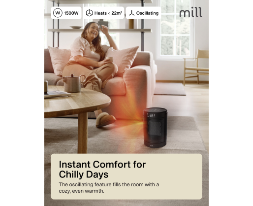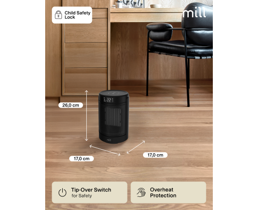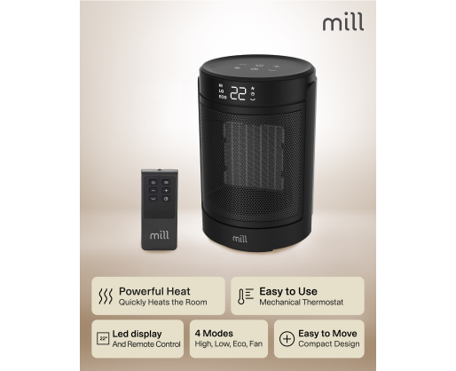 - Mill FH1500BLACK | Ceramic fan heater | 1500 W | Suitable for rooms up to 22 m² | Black...