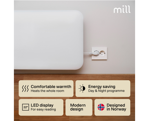 - Mill Heater IB900DN Steel Panel Heater, 900 W, Number of power levels 1, Suitable for r...