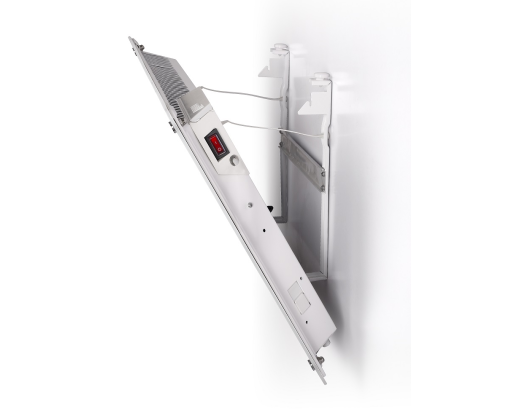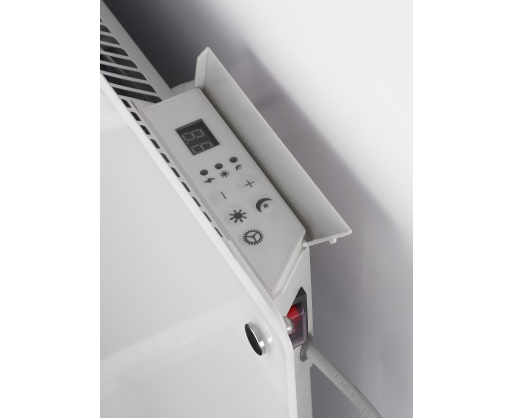 | Kitos savybės | High efficiency and low surface temperature, 100% silent operations, Super accurate thermostat - digitally registered. Day/Night programs, Elegant design with glass front. |