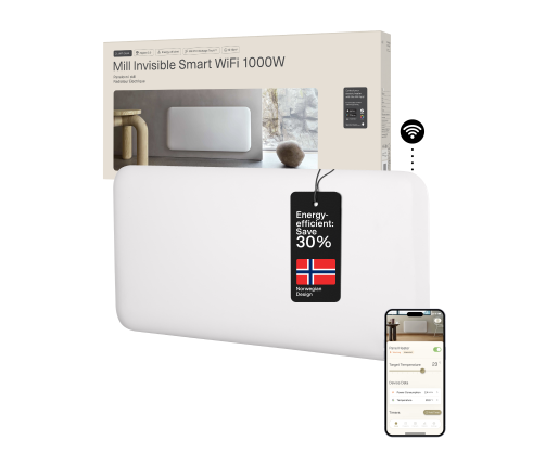 - Mill Invisible Smart WiFi Heater | PA1000WIFI4 | Panel Heater | 1000 W | Suitable for r...
