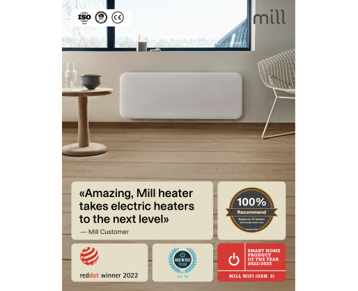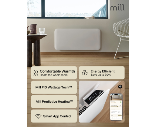 | Specialios funkcijos | LED Display for easy reading; Low energy control; Mill PID Wattage Tech; Mill Predictive Heating; Open Window Function; Silent operation; Overheat protection; Child safety lock |