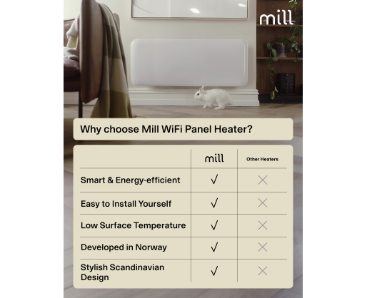 - Mill Invisible Smart WiFi Heater | PA2000WIFI4 | Panel Heater | 2000 W | Suitable for r...