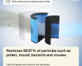| Kitos savybės | WiFi; Antibacterial coating; Pre-filter; Active granular carbon filter; Real filter status indicator; Maintenance-free particle sensor |