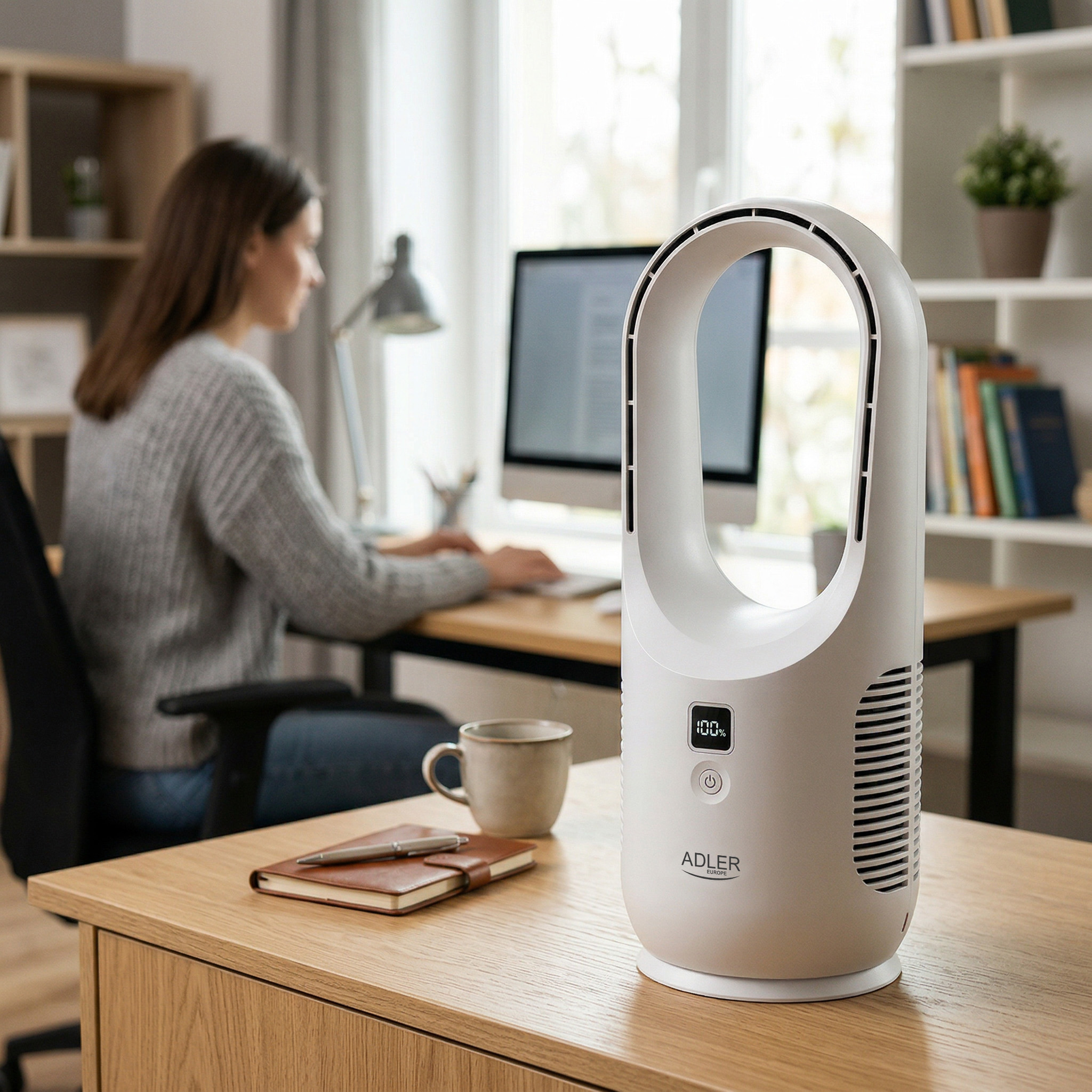 - Adler Bladeless Rechargeable Fan | AD 7343 | Desk Fan | White | Diameter 14 cm | Number...
