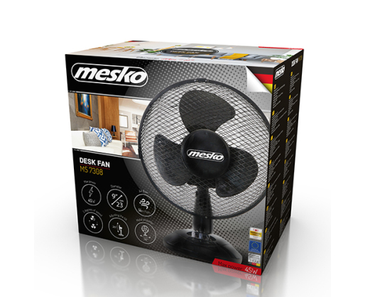 - Mesko | Fan | MS 7308 | Table Fan | Black | Diameter 23 cm | Number of speeds 2 | Oscil...