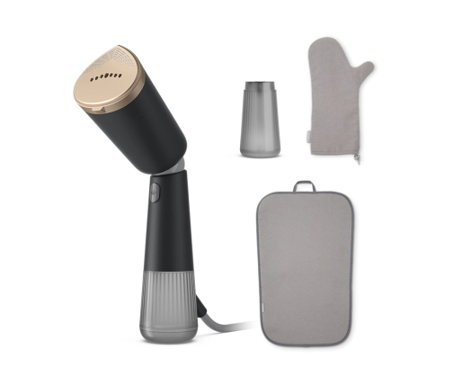 | Specialios funkcijos | Different steam levels: 2 settings: ECO and Max; Horizontal and vertical evaporation; 45% of the plastic is fully recycled: looks great and saves the planet; Steam kills up to 99.9% of bacteria/yeast and dust mites; Plug and play: use without an ironing board in seconds |