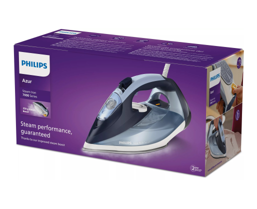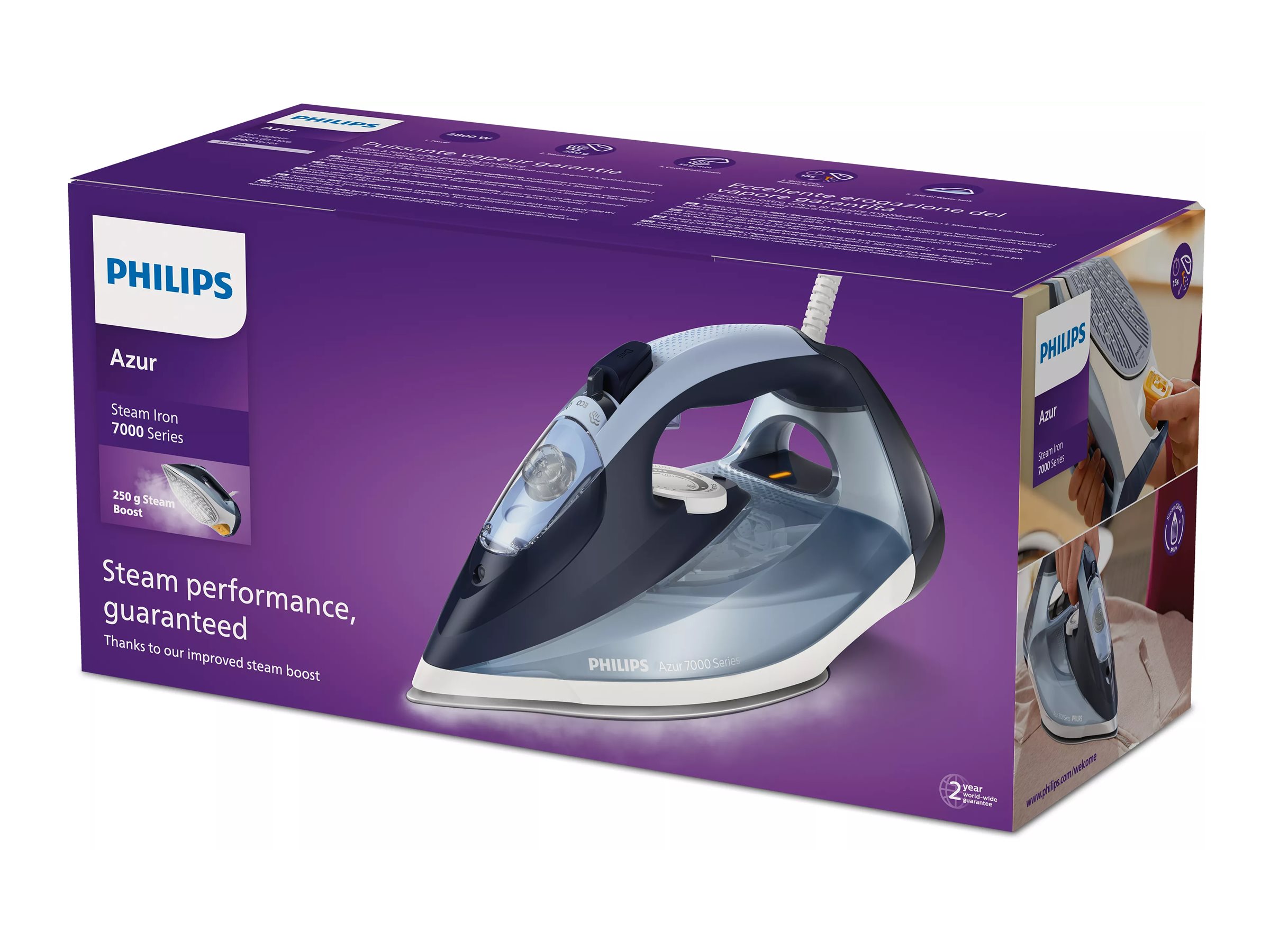 Philips Steam Iron | DST7020/20 | Steam Iron | 2800 W | Water tank capacity 300 ml | Continuous steam 50 g/min | Steam boost performance 250 g/min | Blue 407874