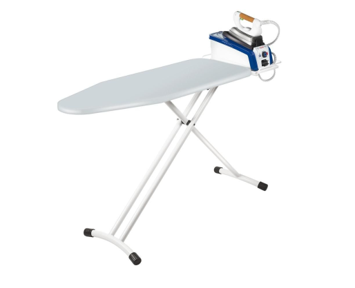| Kitos savybės | Professional ironing board for steam generator irons with reinforced frame. Easy opening system. 4 position adjustable height. Vertical safety lock. High performance padded cotton cover allows steam to pass through. |