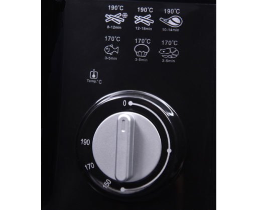 | Kitos savybės | Regulated thermostat. Basket with a lifting function. Folding handle. Lid opening button. Removable oil container. |
