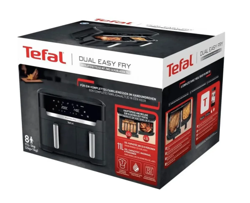 - TEFAL | Air Fryer | EY942HE0 Easy Fry Dual XXL | Power 2700 W | Capacity 11 L | Black 4...