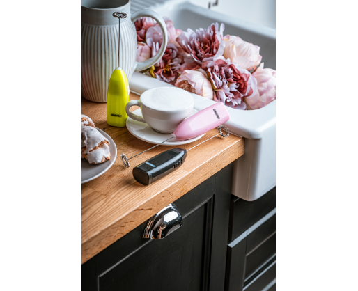 | Kitos savybės | Power source: Batteries 2x1.5V AA (not included); For preparing frothed milk, hot chocolate and matcha tea |