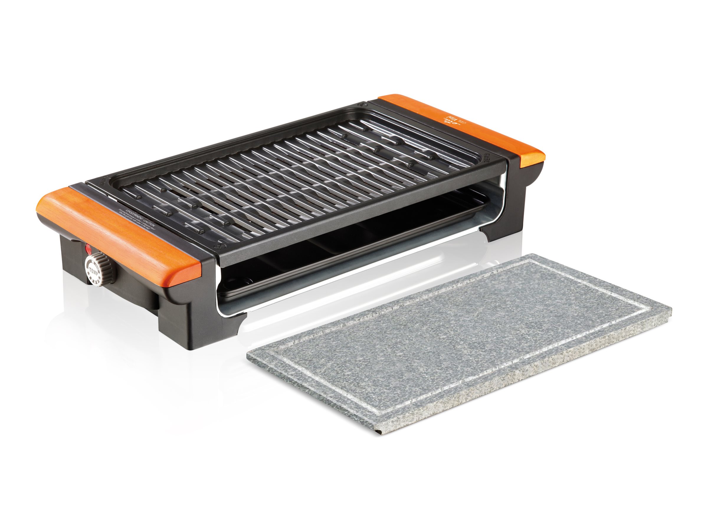 | Kitos savybės | Changeable plates (stone, cast-iron); Stone plate for slower cooking of well-done steaks |