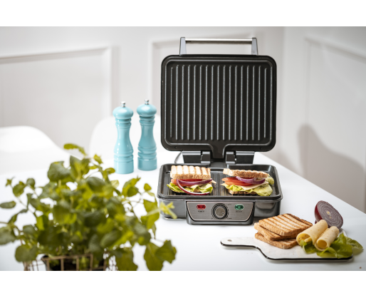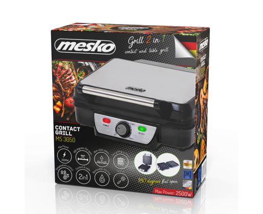 | Kitos savybės | The max power 2500W Mesko MS 3050 electric grill allows you to prepare a wide array of hot dishes – from burgers, through steaks, chicken, and other meats, to grilled cheese and vegetables. The heating plates are covered with a Teflon coating thanks to which the food does not stick, so you can clean the grill in a matter of seconds. It also allows you to prepare healthier dishes as you don't have to use fat. The MS 3050 has a grilling area large enough to prepare a meal for a family or a group of friends. |