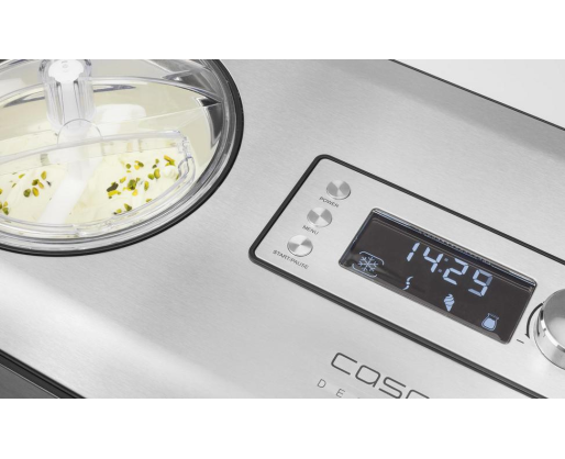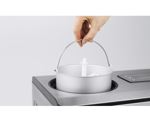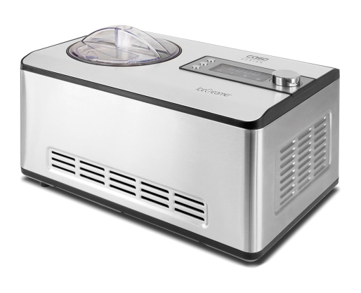 | Kitos savybės | 4 programmes for the fully automatic production of ice cream of yoghurt. Compressor cooling: Pre-cooling down to -35 ° C in just a few minutes thanks to 180 watt cooling capacity. Ingredients can be added during operation via the refill flap. |