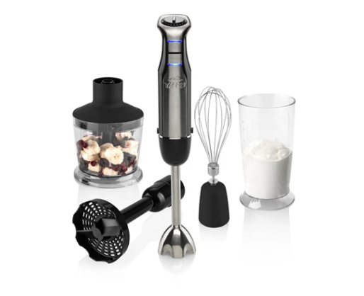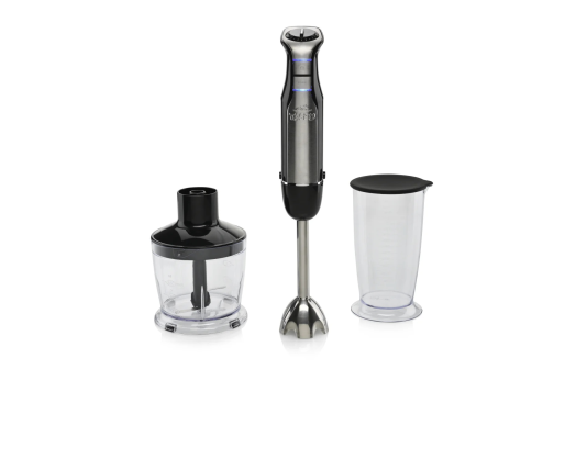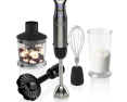 | Priedai pridėti | Detachable stainless steel hand blender; Beater attachment; 500ml chopper; 700ml working container; Special attachment for potato mashing and vegetable purée preparation |