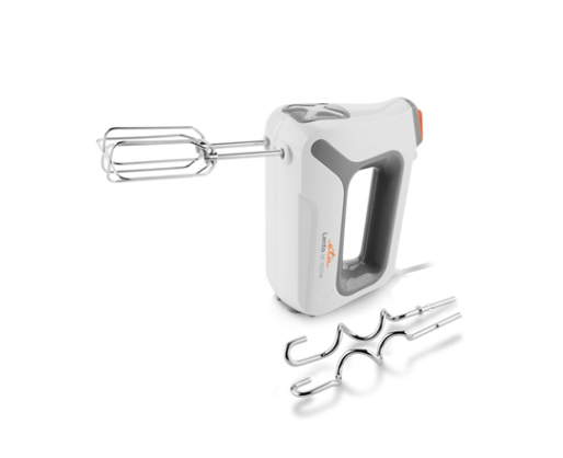 | Specialios funkcijos | DC long life motor; Button to remove beaters and hooks easy; Ergonomic handle shape; Safety fuse against overheating |