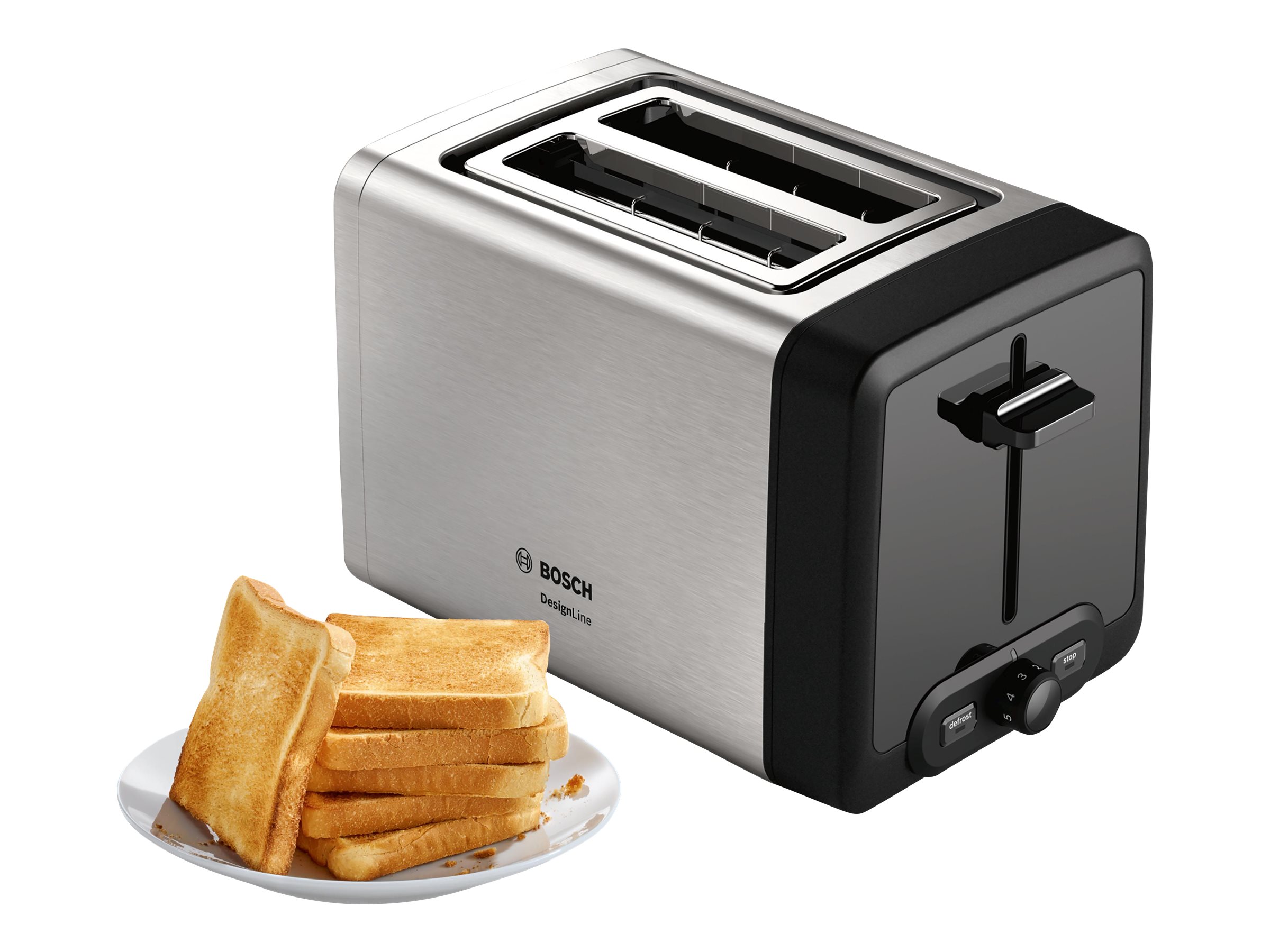 Bosch | DesignLine Toaster | TAT4P420 | Power 970 W | Number of slots 2 | Housing material Stainless Steel | Stainless steel/Black 333979