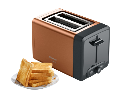 Bosch | DesignLine Toaster | TAT4P429 | Power 970 W | Number of slots 2 | Housing material Stainless Steel | Copper/Black 333977