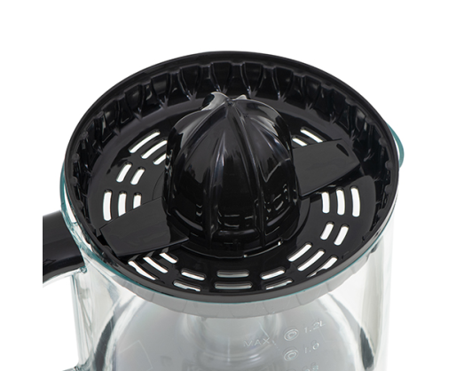 | Kitos savybės | 2 press cones for small and big citrus fruits; Auto start/stop; Right and left rotation increases the amount of juice; Pulp sieve that separates juice from the pulp |