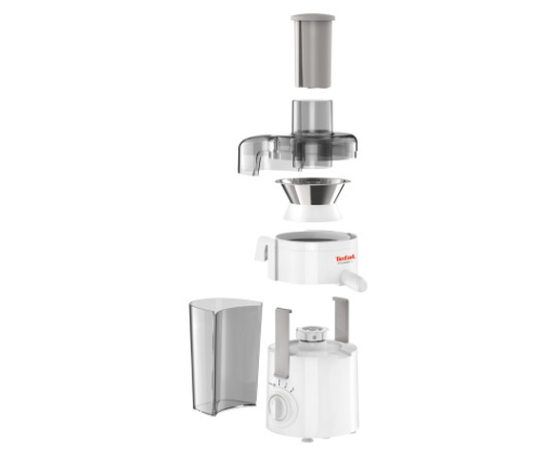 | Kitos savybės | With the Tefal Frutelia + juicer you will achieve perfect, healthy and delicious results every day, making it easy to make exceptional fresh fruit juice; Thanks to the wide opening, you can put in large pieces or even whole fruits or vegetables; The stainless steel filter ensures long-lasting performance, and the 950ml pulp collector is perfect for any occasion; A convenient compact frame for easy storage and safety features such as non-slip feet make Frutelia + the perfect juicer for every day |