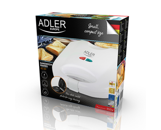 - Adler Sandwich maker AD 301 750 W, Number of plates 1, Number of pastry 2, White 142946