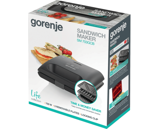 - Gorenje Sandwich maker SM703GCB 700 W Number of plates 3 Number of pastry 2 Black 403545
