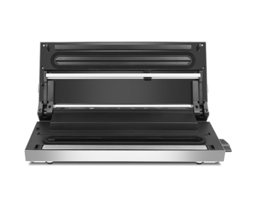 | Kitos savybės | Varied functions: manual sealing, automated vacuuming and welding . Adjustable welding time: Ideal for moist or marinated foods. Adjustable, infinitely variable vacuum strength IVS: ideal for sensitive foods. Piston pump (15L / min) and powerful motor. |