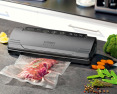 | Kitos savybės | Fully automatic vacuuming and welding; Ideal for storing and maintaining the freshness of fish, meat, vegetables and fruit; Variable vacuum strength thanks to the vacuum stop button: Particularly suitable for pressure-sensitive foods; Practical, separate welding function; Simple weld seam up to 30 cm wide (any bag length); Compact design, low weight |