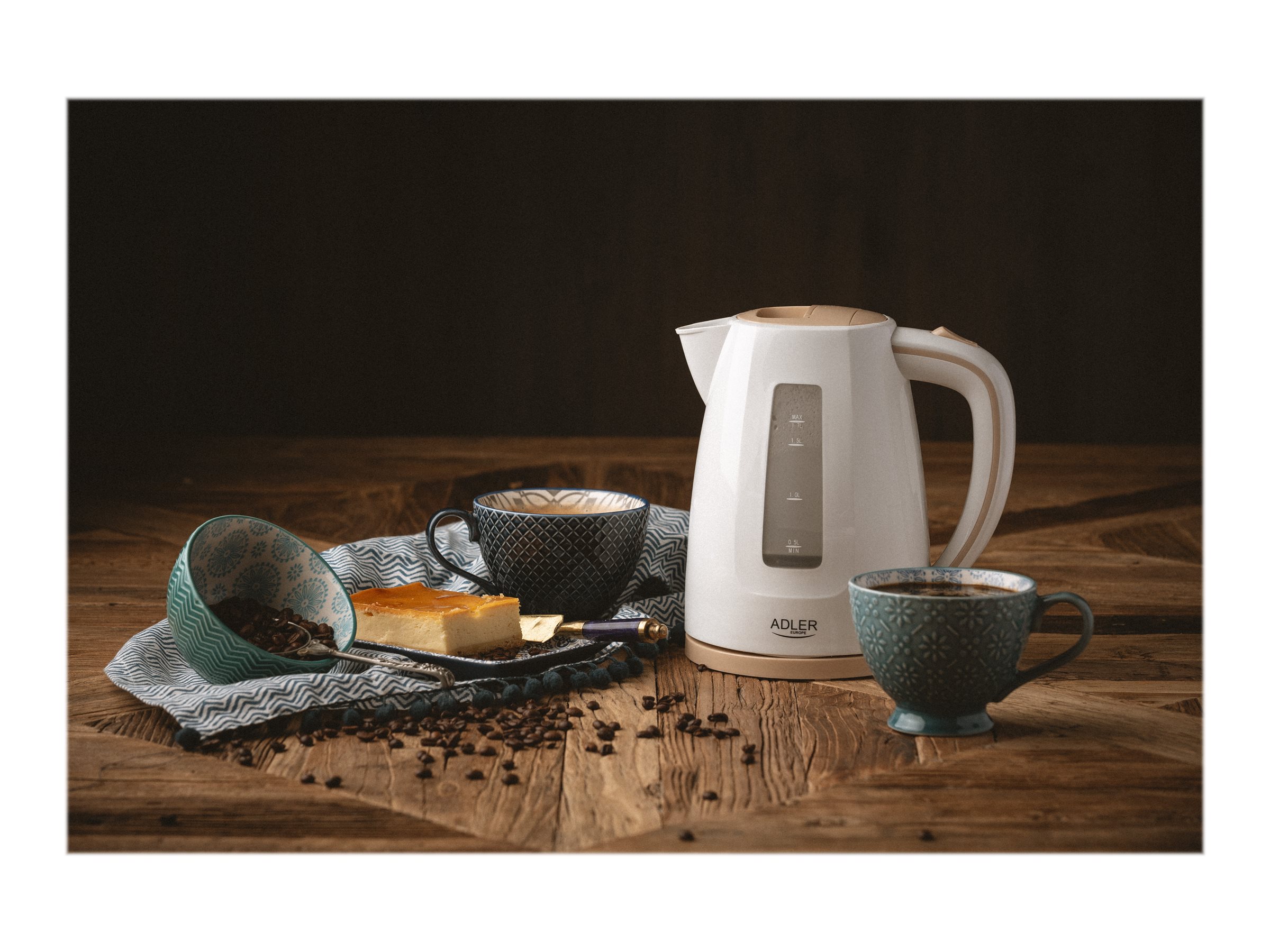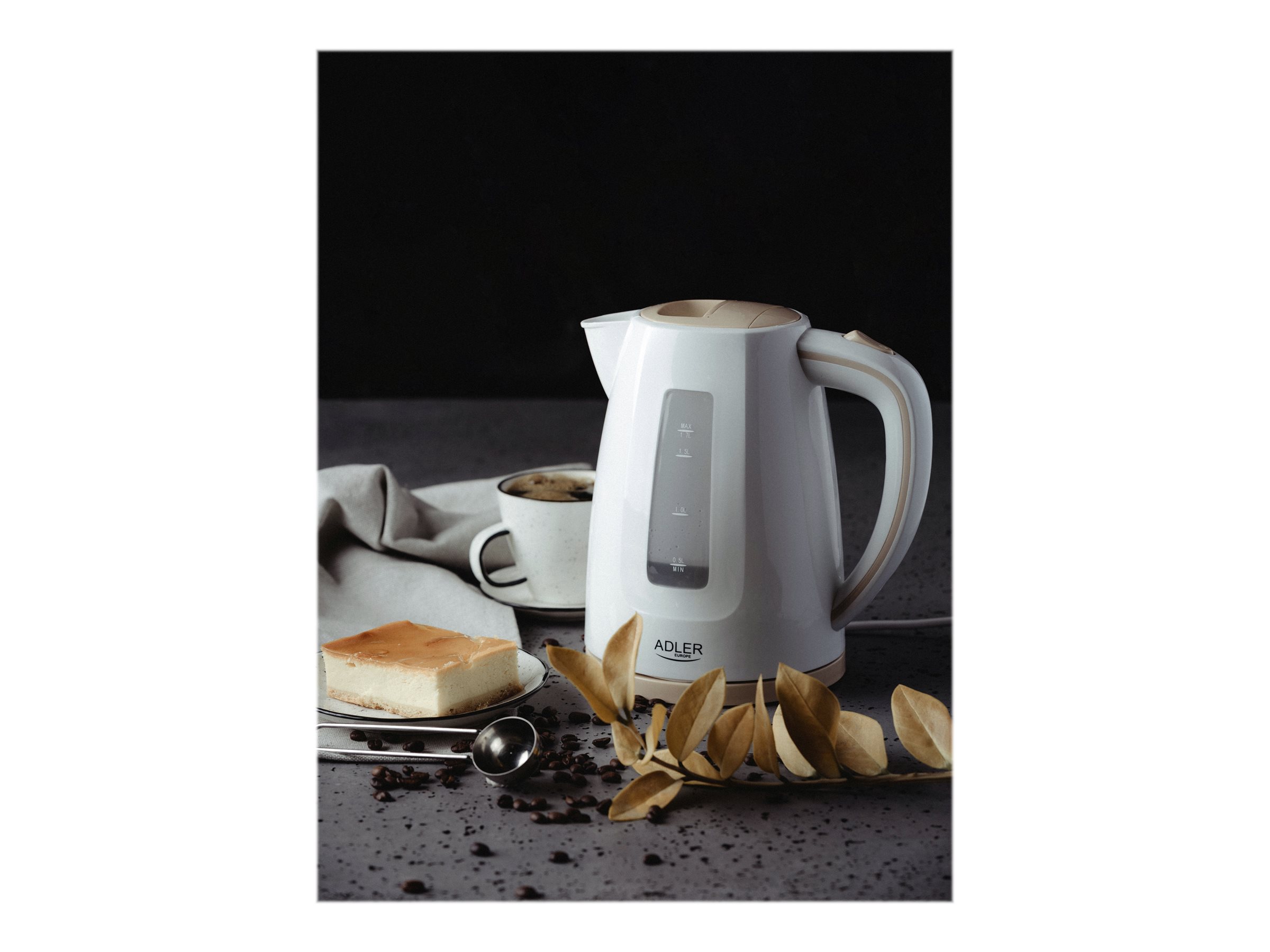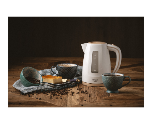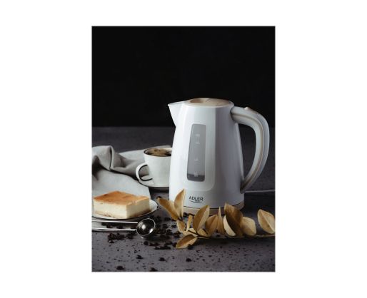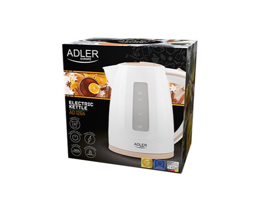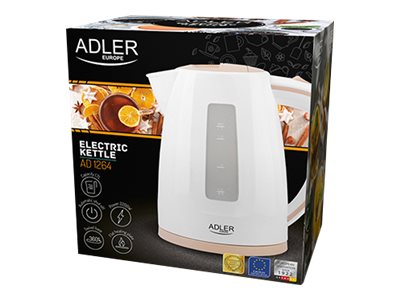 - Adler Kettle AD 1264 Standard, 2200 W, 1.7 L, Plastic, White, 360° rotational base 255554