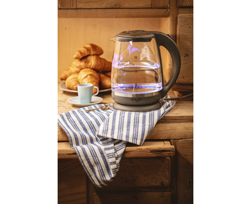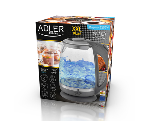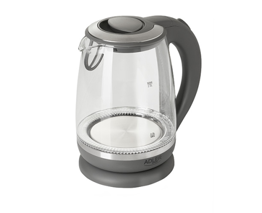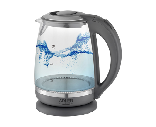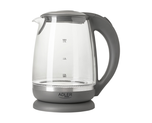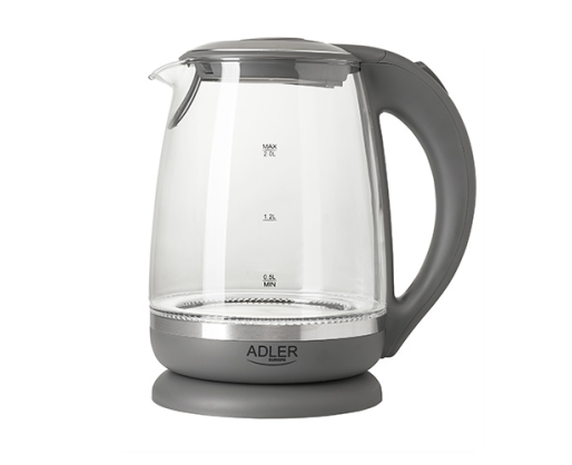 - Adler Kettle AD 1286 Standard 2200 W 2 L Plastic/Glass 360° rotational base Grey/ trans...