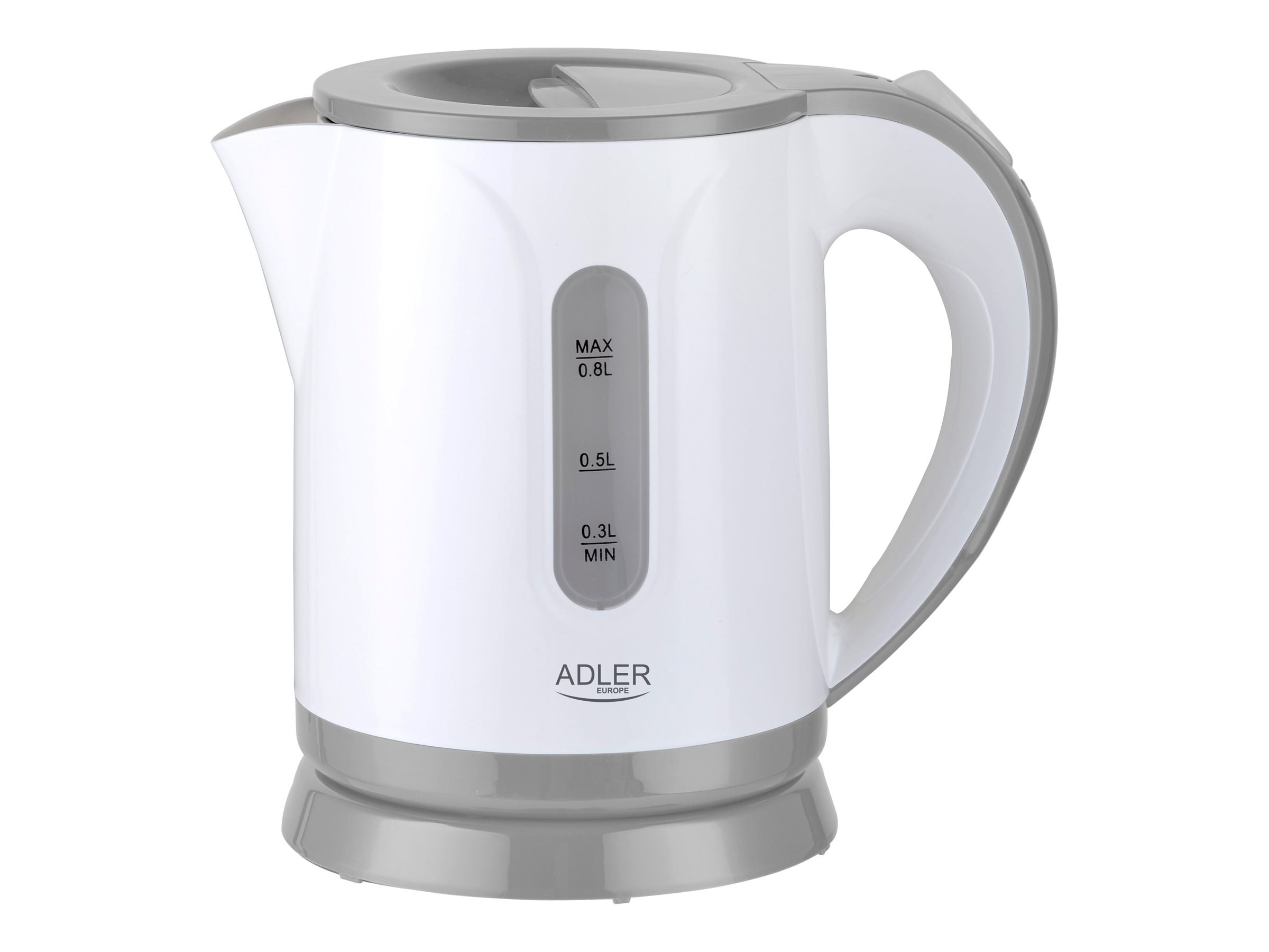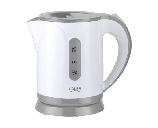 Adler Kettle AD 1371g Electric, 850 W, 0.8 L, Stainless steel/Polypropylene, 360° rotational base, White/Grey 389832
