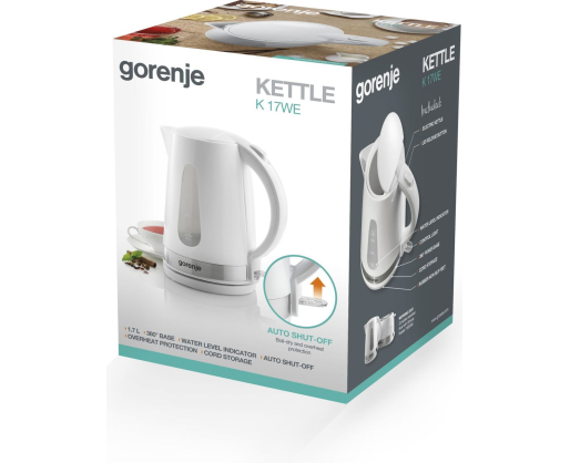 - Gorenje Kettle K17WE Electric, 2200 W, 1.7 L, Plastic + metal, 360° rotational base, Wh...