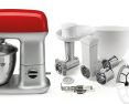 | Priedai pridėti | grinding meet (4 discs), slicing veggies (3 discs), making cookies, dough kneader, for whisking, mixing attachment |