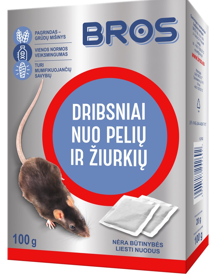 BROS Dribsniai nuo pelių ir žiurkių 100g