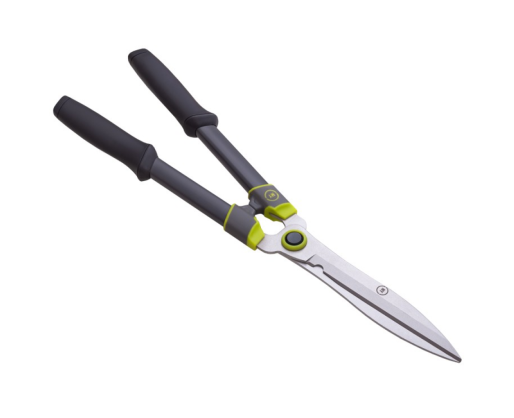 Sodo žirklės gyvatvorėms – lengvas ir patogus įrankis. Lygios formos ašmenys lygiai, švariai nupjauna šakeles. Ašmenys pagaminti iš japoniško plieno su teflono danga, kuri mažina trintį karpant šakas, todėl lengviau dirbti ir valyti įrankį.