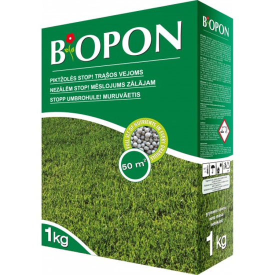- BIOPON vejoms nuo piktžolių 1kg ( trąšų granulės )