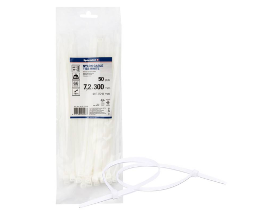 - Nailoninis užveržimo dirželis, baltas 7,2x300mm,50vnt, 7300B