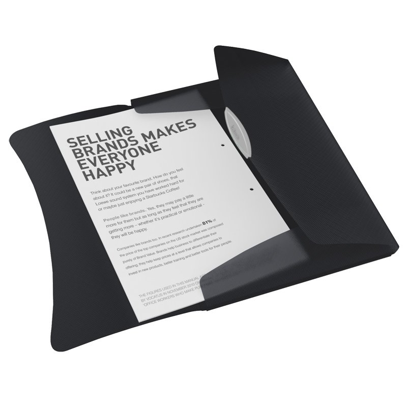Aplankas Esselte Vivida A4, plastikinis, su guma, juodos spalvos. 3 atvartai. Telpa iki 150 lapų.