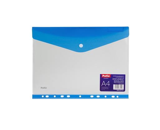 - Aplankas (vokas) su spaustuku ir europerforacija PATIO, A4, PP, šviesiai mėlyna sp.
