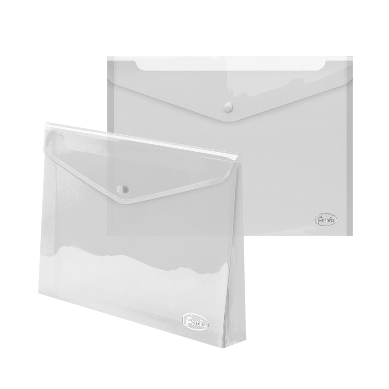 - Aplankas - vokas su spaustuku A4+ praplatintas FOROFIS, skaidrus baltas