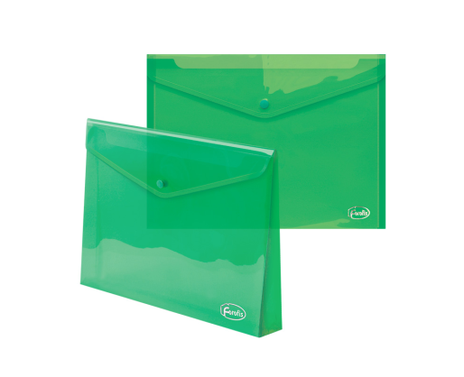 - Aplankas - vokas su spaustuku A4+ praplatintas FOROFIS, skaidrus žalias