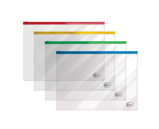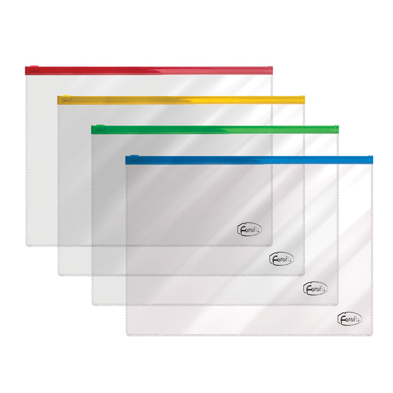 - Skaidraus plastiko vokelis A4, su užtrauktuku FOROFIS