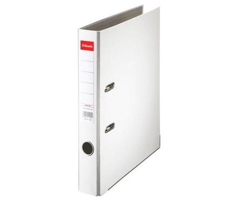 Segtuvas ekonominis Esselte A4, 5cm, baltas. Išorinė viršelio pusė dengta spalvotu plastiku, vidus - kartonas. Metalu kaustyta apačia ir kampučiai.