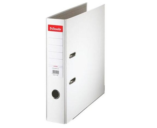 Segtuvas ekonominis Esselte A4, 7cm, baltas. Išorinė viršelio pusė dengta spalvotu plastiku, vidus - kartonas. Metalu kaustyta apačia ir kampučiai.