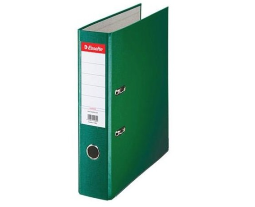 Segtuvas ekonominis Esselte A4, 7cm, žalias. Išorinė viršelio pusė dengta spalvotu plastiku, vidus - kartonas. Metalu kaustyta apačia ir kampučiai.