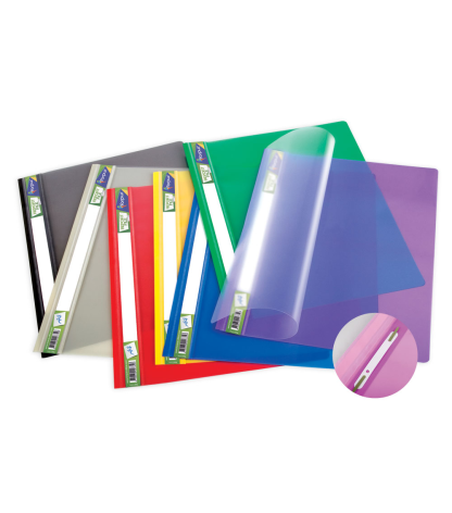 Plastikini segtuvėlis skaidriu viršeliu su įsegėle. A4+ formatas.