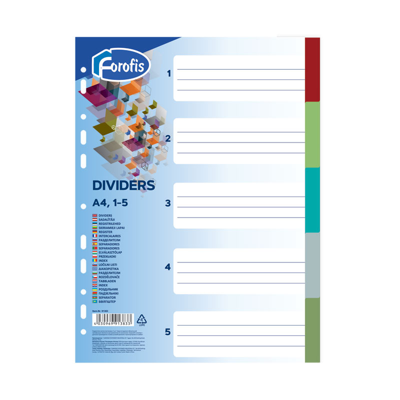 - Skiriamieji lapai FOROFIS 1-5, A4, spalvoti plastikiniai