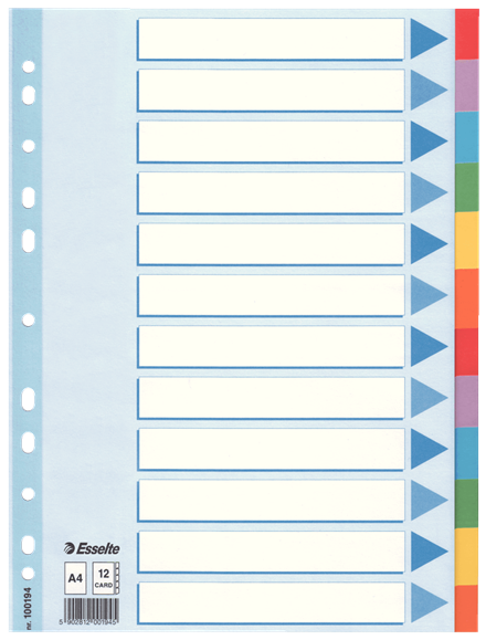 - Skirtukai Esselte A4, 1-12, spalvoti, kartoniniai